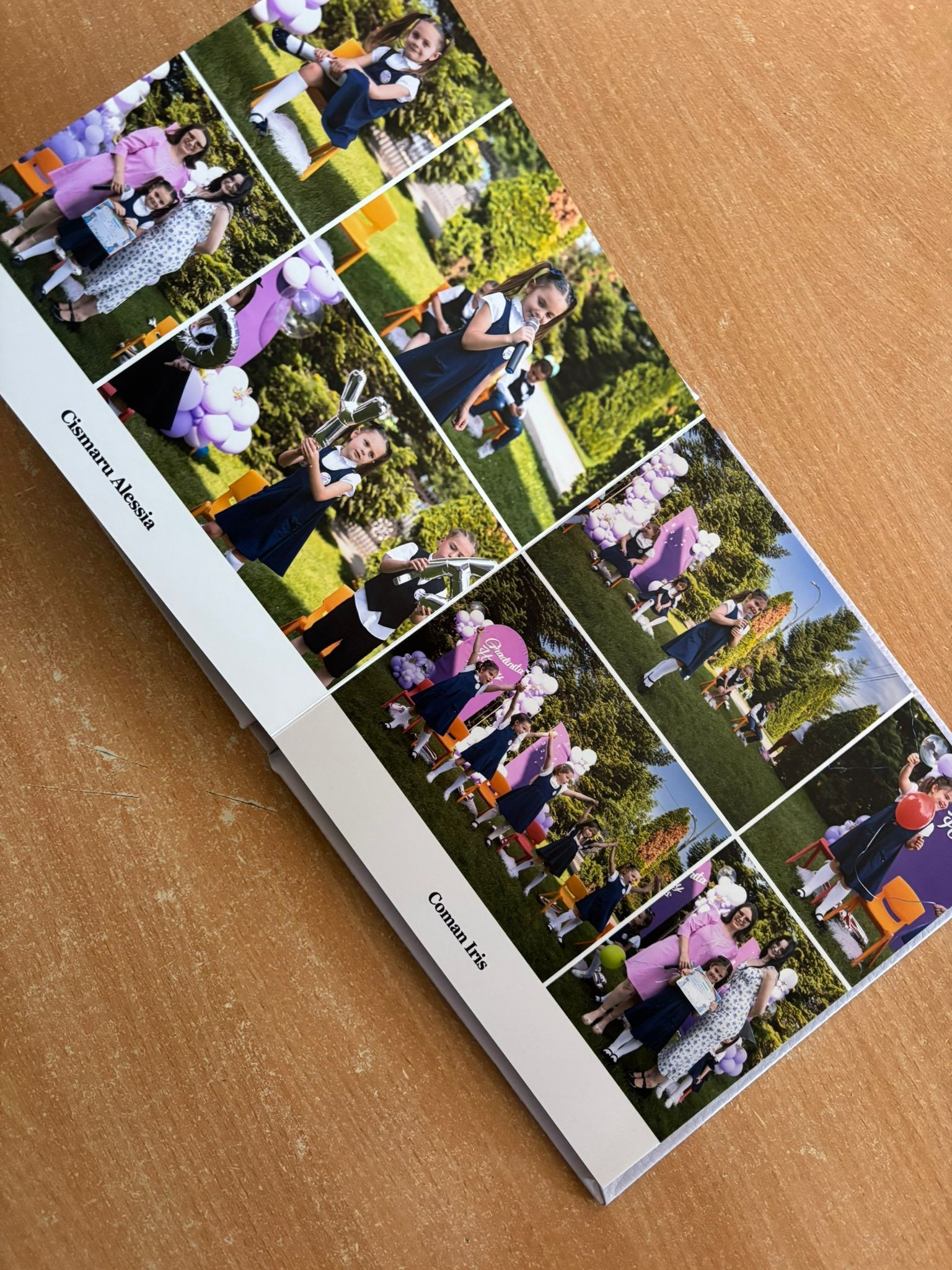 ●interior numele copiilor + așezarea pozelor în ordine alfabetica (fie câte de 2 tip portret de copil /fie 4 poze (2 tip portret +2 tip peisaj +1 poza de grup